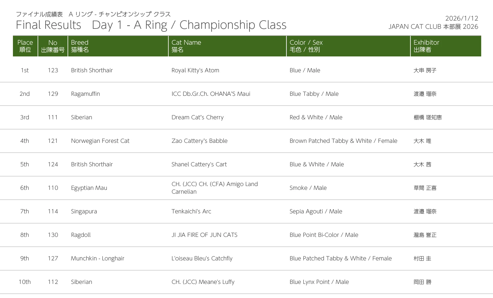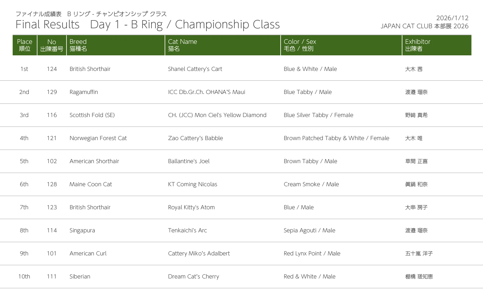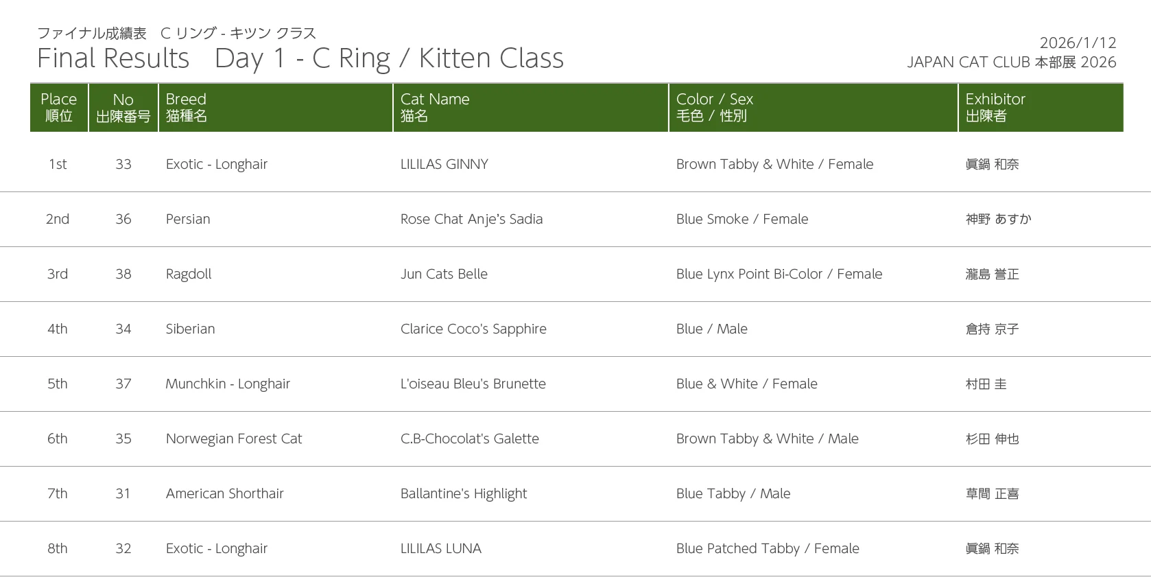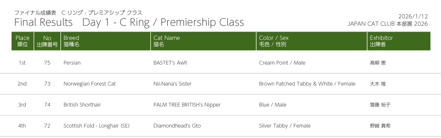 Freewind Photos - 2026 JAPAN CAT CLUB SHOW